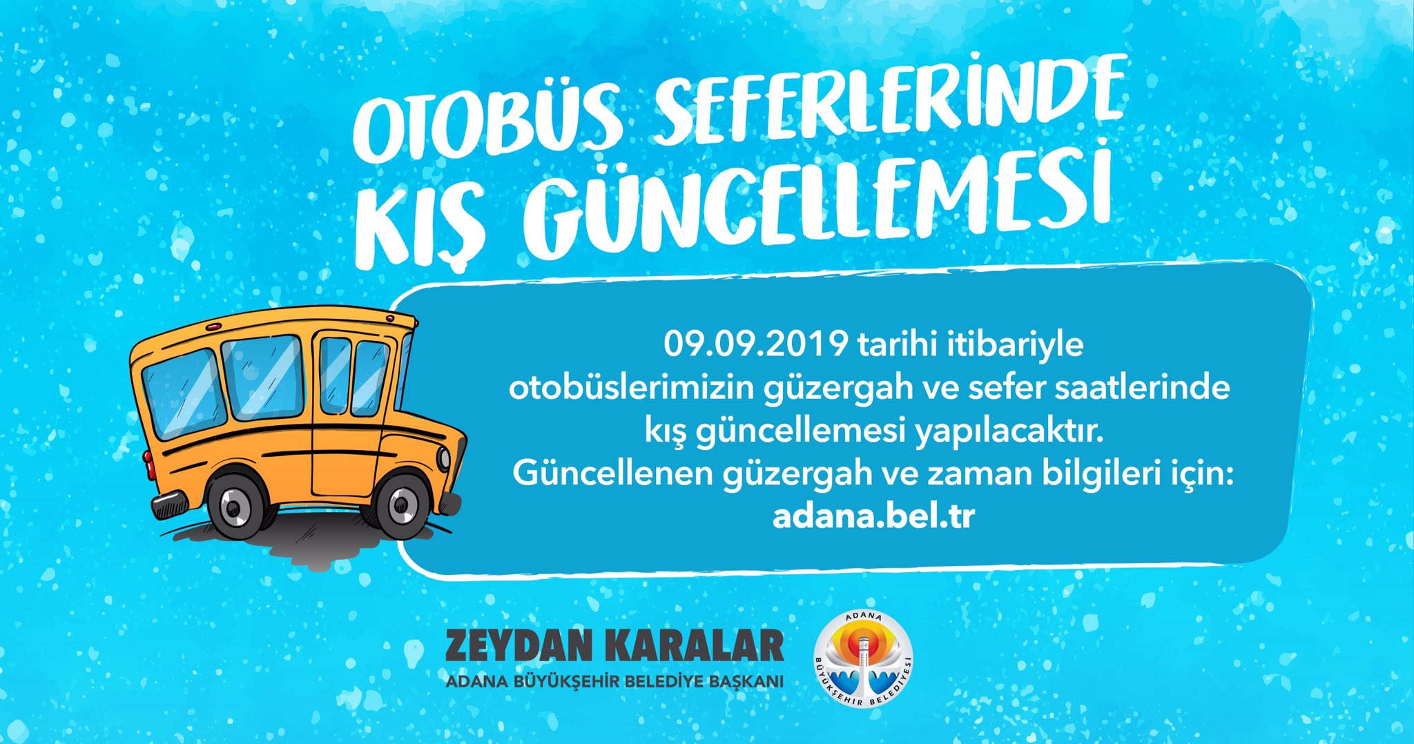 T C Adana Buyuksehir Belediyesi On Twitter Kiymetli Vatandaslarimiz 09 09 2019 Bugun Itibariyle Otobuslerimizin Guzergah Ve Sefer Saatlerinde Kis Guncellemesi Yapilacaktir Guncellenen Guzergah Ve Zaman Bilgileri Icin Https T Co Sn63hbn3pf