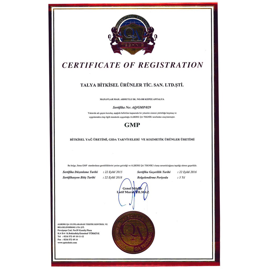 Sertifikalarimiz Talya Bitkisel Urunler
